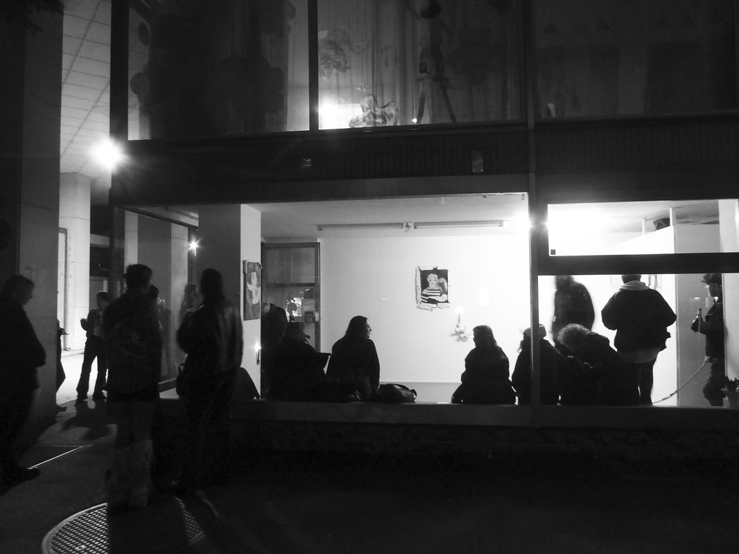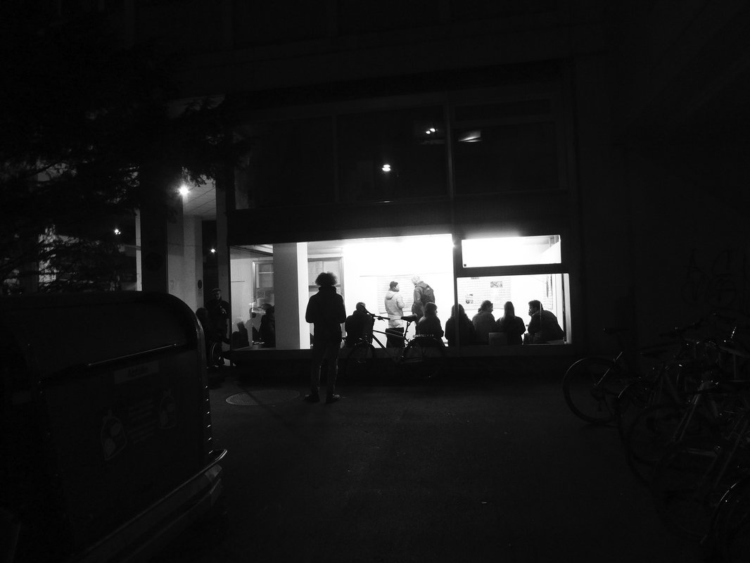 Lokal-int strahlt durch seine Schaufenstersituation aus in den öffentlichen Raum. Manifestiert sich dort und setzt sich ihm aus...